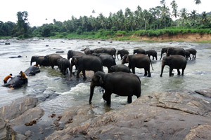 Pinnawala Elephant Orphanage is an orphanage, nursery and captive breeding ground for wild Asian elephants located at Pinnawala village, 13 km (8.1 mi) northeast of Kegalle town in Sabaragamuwa Province of Sri Lanka. Pinnawala is notable for having the largest herd of captive elephants in the world. In 2011, there were 88 elephants, including 37 males and 51 females from 3 generations, living in Pinnawala.The orphanage was originally founded in order to afford care and protection to many of the orphaned unweaned wild elephants found wandering in and near the forests of Sri Lanka. It was established in 1975 by the Sri Lanka Department of Wildlife Conservation (DWC).